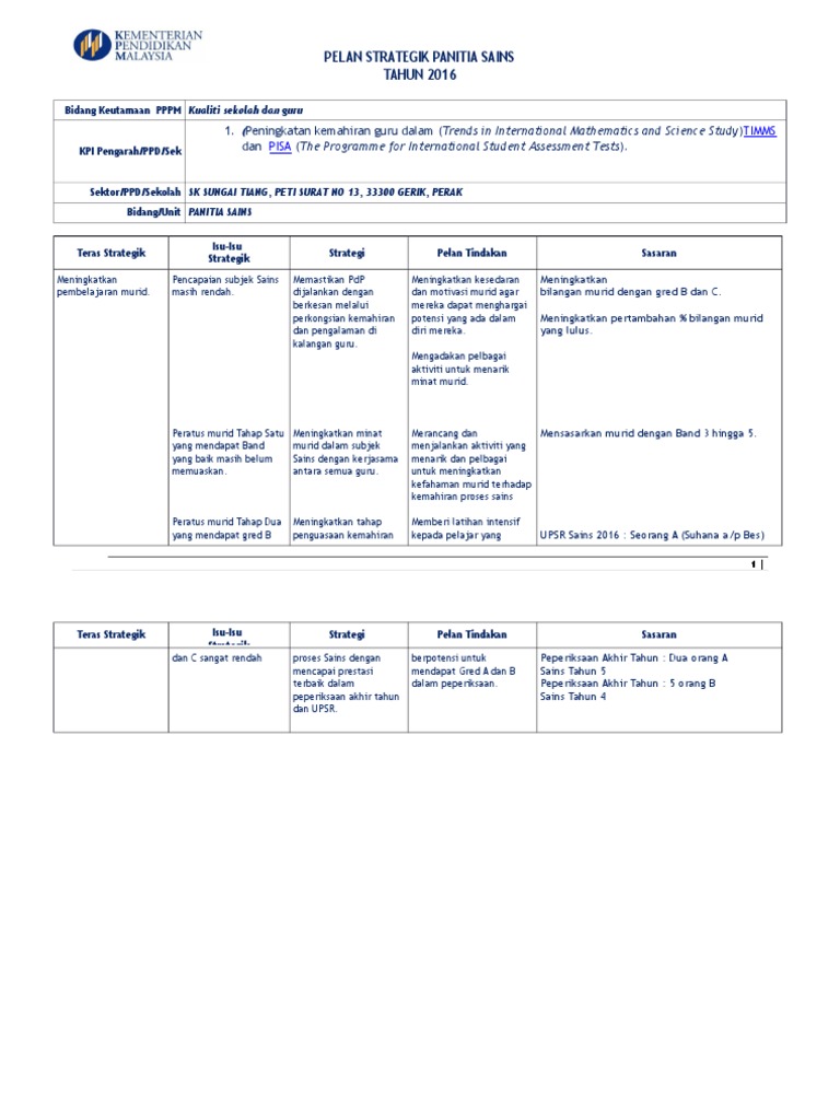 Jadual Perancangan Aktiviti Tahunan Panitia Sains