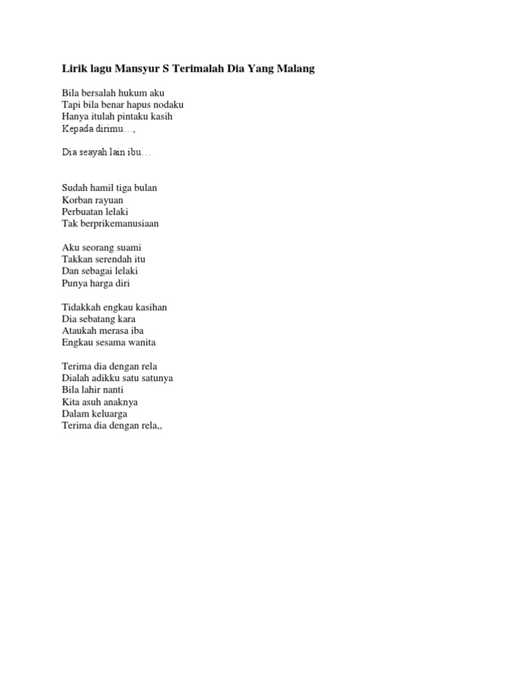 Lirik Lagu Mansyur S Terimalah Dia Yang Malang