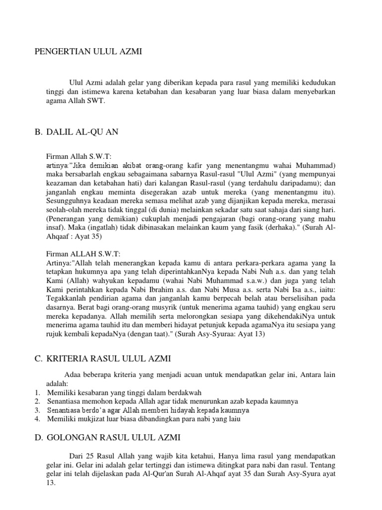 Apakah Arti Rasul Ulul Azmi Brainly Co Id
