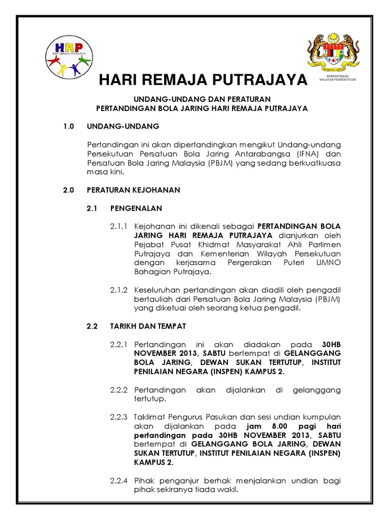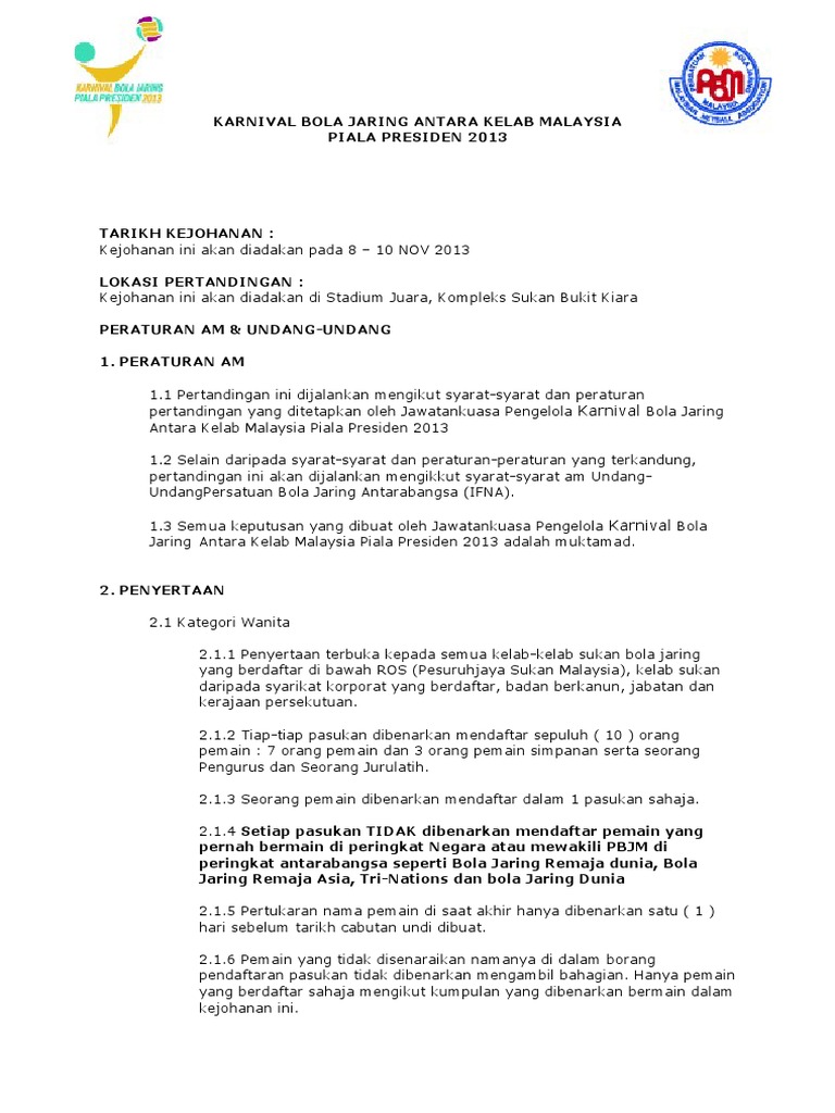 Syarat Syarat Dan Peraturan Permainan Karnival Bola Jaring Antara Kelab Malaysia